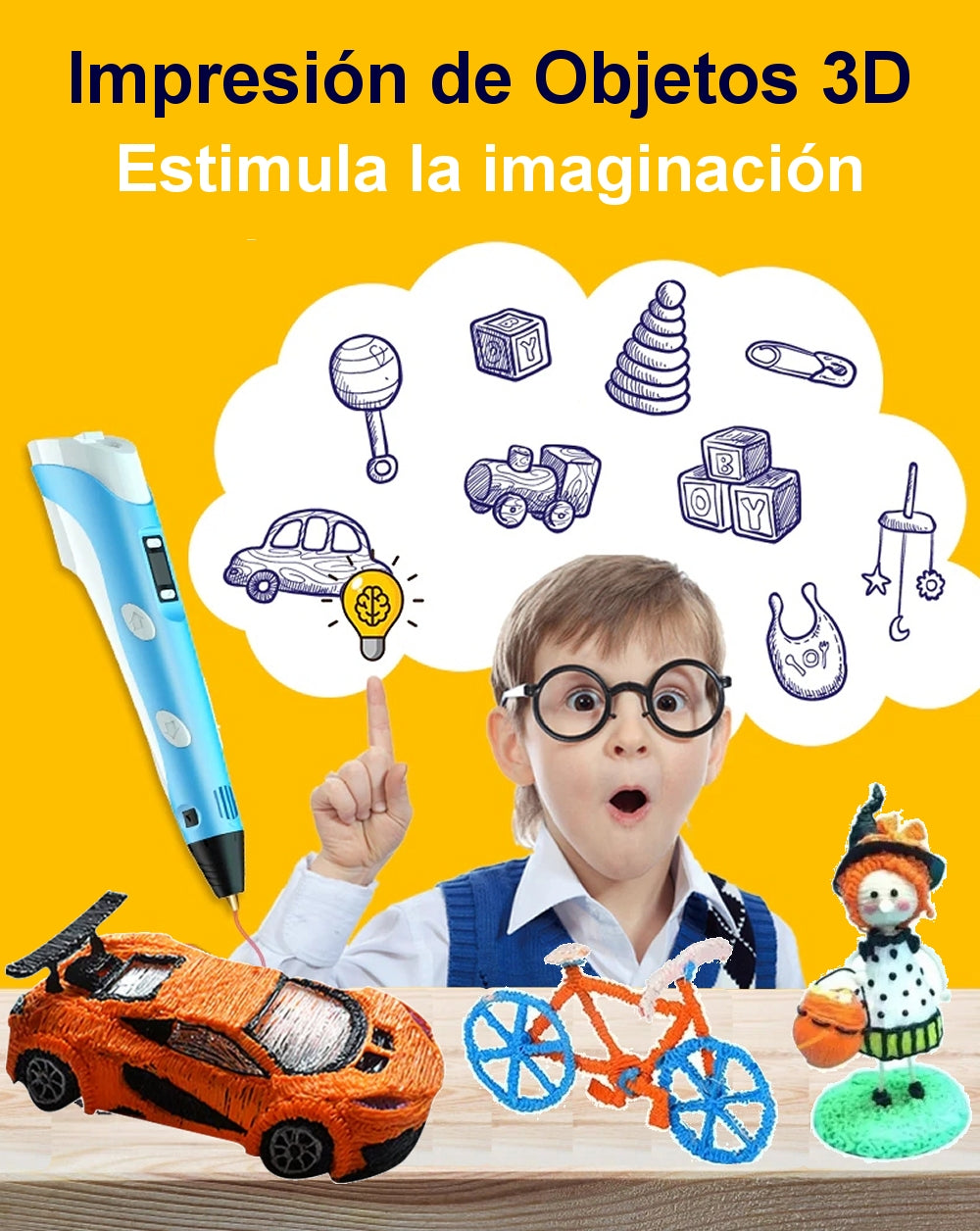 Crea figuras en 3D, maquetas y dibujos creativos con nuestro lápiz 3D, compatible con filamentos PLA y ABS.